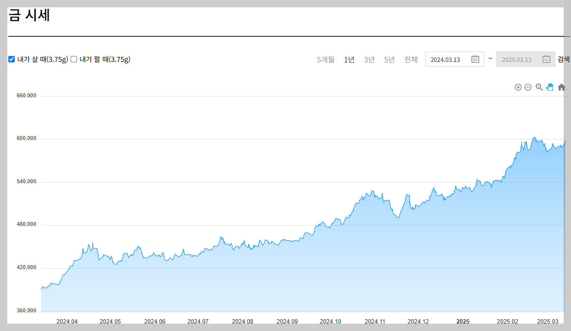 금 가격은 작년부터 꾸준히 상승하기 시작했으며, 경제적 불확실성이 높아지고 국제 정세가 불안정해짐에 따라 2025년에도 상승세를 보이고 있습니다. 이렇게 금 가격이 계속해서 상승함에 따라